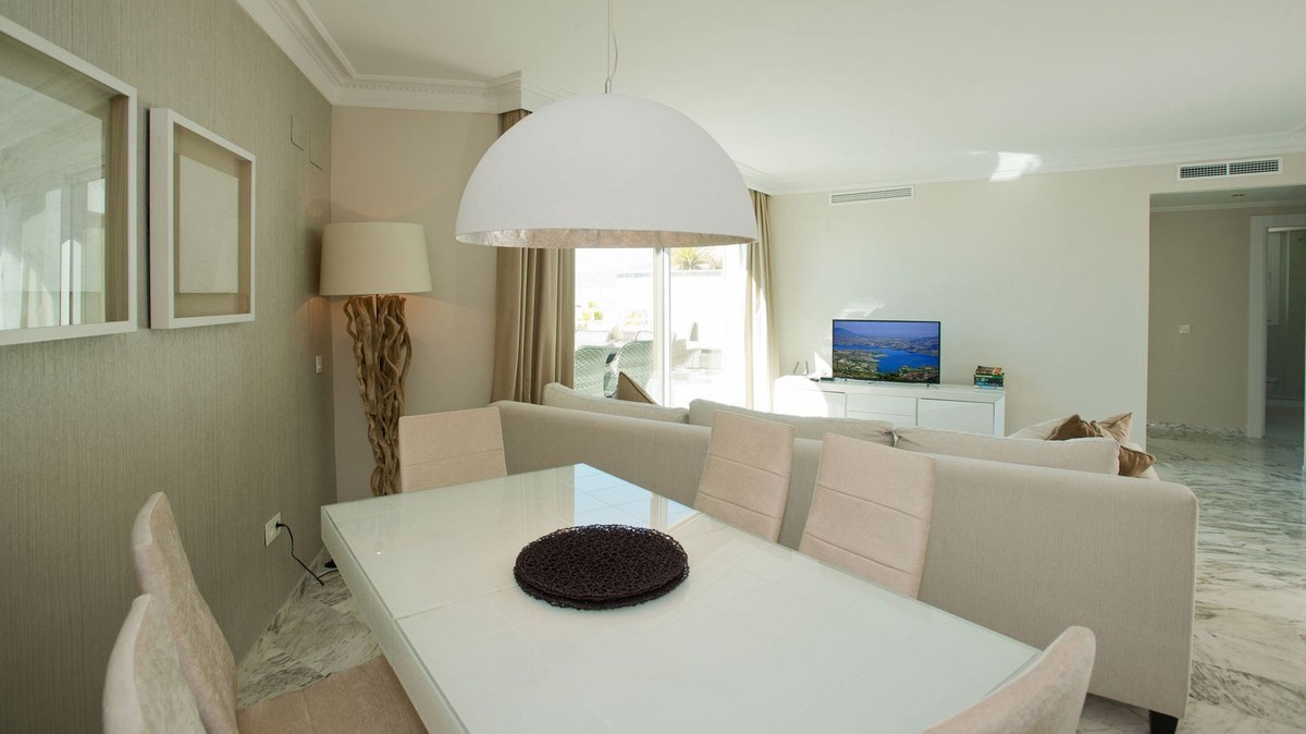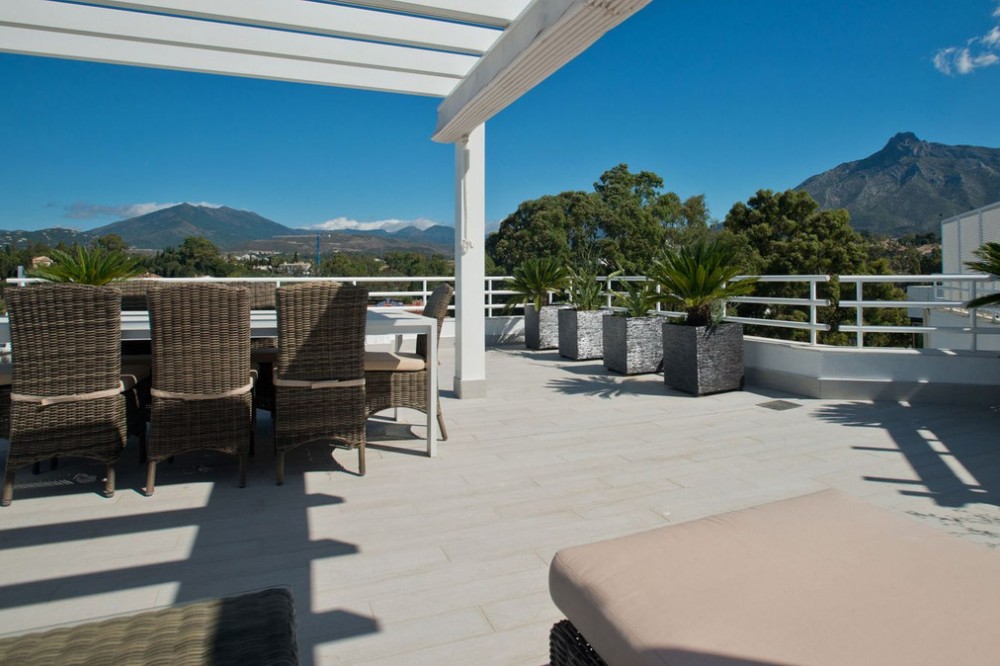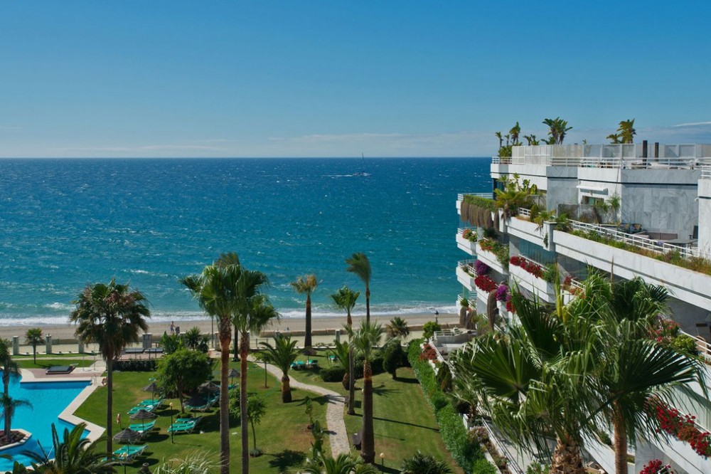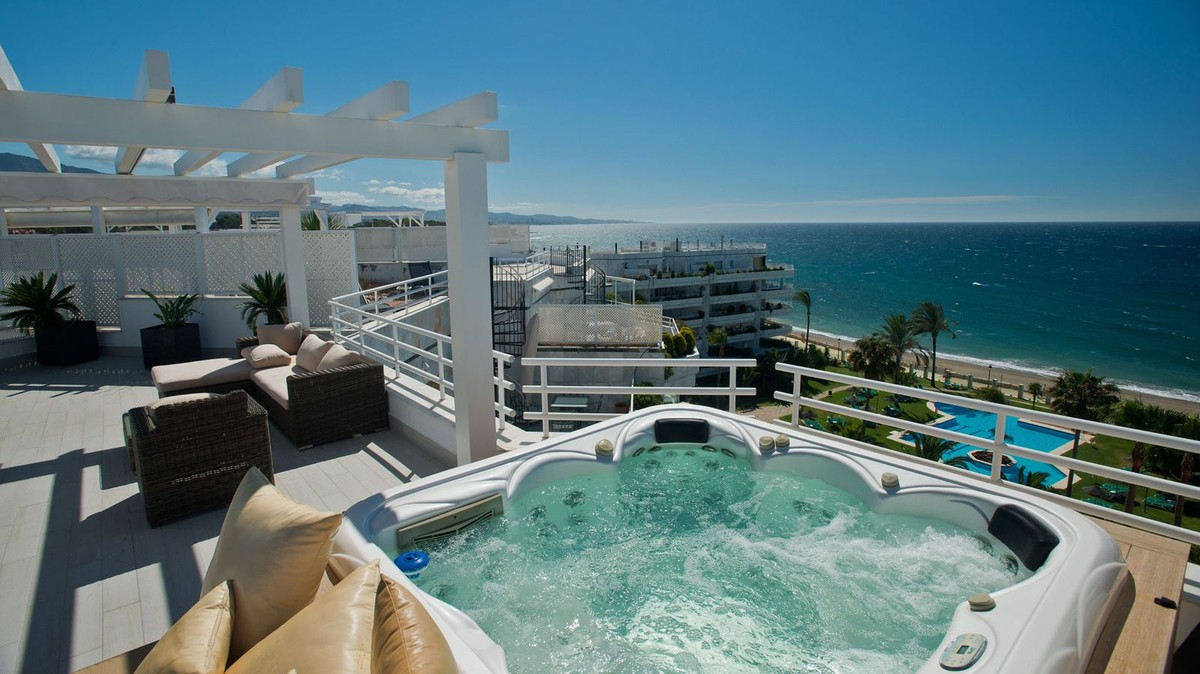 - Frontline Beach Penthouse – Playa Esmeralda, Marbella Golden Mile 3 Bedrooms | Rooftop Solarium with Jacuzzi | Panoramic Sea Views An extraordinary opportunity to own a luxury beachfront penthouse in the prestigious Playa Esmeralda residence, located on Marbella’s iconic Golden Mile. This exclusive property offers uninterrupted views of the Mediterranean Sea, stretching from the Bay of Marbella to Puerto Banús and Gibraltar, all from one of the most sought-after addresses on the Costa del Sol. The penthouse features a spacious open-plan living and dining area filled with natural light, seamlessly connecting to a large south-facing terrace overlooking the sea. A separate modern kitchen is fully equipped with high-end appliances and ample storage, making it as functional as it is stylish. The home includes three generous bedrooms: a master suite with an en-suite bathroom and terrace access, and two further bedrooms that share a beautifully finished full bathroom. Throughout the home, luxurious details such as marble flooring, double-glazed windows, and central air conditioning provide both comfort and quality. One of the standout features of this property is the expansive private rooftop solarium. Designed for both relaxation and entertaining, it boasts a large jacuzzi, a shaded dining area with BBQ facilities, and multiple sunbathing zones — all with breathtaking panoramic sea views. Whether hosting guests or enjoying quiet sunsets, this rooftop space offers the ultimate outdoor living experience. Located within the secure, gated community of Playa Esmeralda, the property benefits from 24-hour security, beautifully landscaped tropical gardens, and a large communal swimming pool. Direct access to the beach and Marbella’s famous seaside promenade allows for effortless coastal walks to either Puerto Banús or Marbella town, passing by the iconic Marbella Club and Puente Romano resorts along the way. This penthouse also includes an underground parking space and a private storage room, adding further convenience and value. Situated close to world-class restaurants, designer boutiques, beach clubs, golf courses, and top international schools, the location is second to none. Rarely does a frontline beach penthouse of this calibre become available on the Golden Mile. Whether you’re looking for a luxurious permanent residence, a prestigious holiday home, or a secure long-term investment, this is a property that delivers on all fronts. Contact us today to arrange a private viewing.