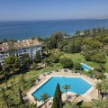- Unique opportunity to purchase two apartments which were united into one big apartment in the famous Torre Real in Marbella. Offering a total of 120m2 living and 98m2 terraces all around. Due to the location on one of the last floors of the building, you enjoy stunning views to the sea, views along the coast and to the mountains. The property comes with two private parking in the underground garage and a storage room. The gated community is also very special with large community grounds, gardens, pool areas and two tennis courts. The building offers a lift and a concierge service. About 10minutes from the historic part of Marbella town and only 45 minutes from the Málaga airport and city.