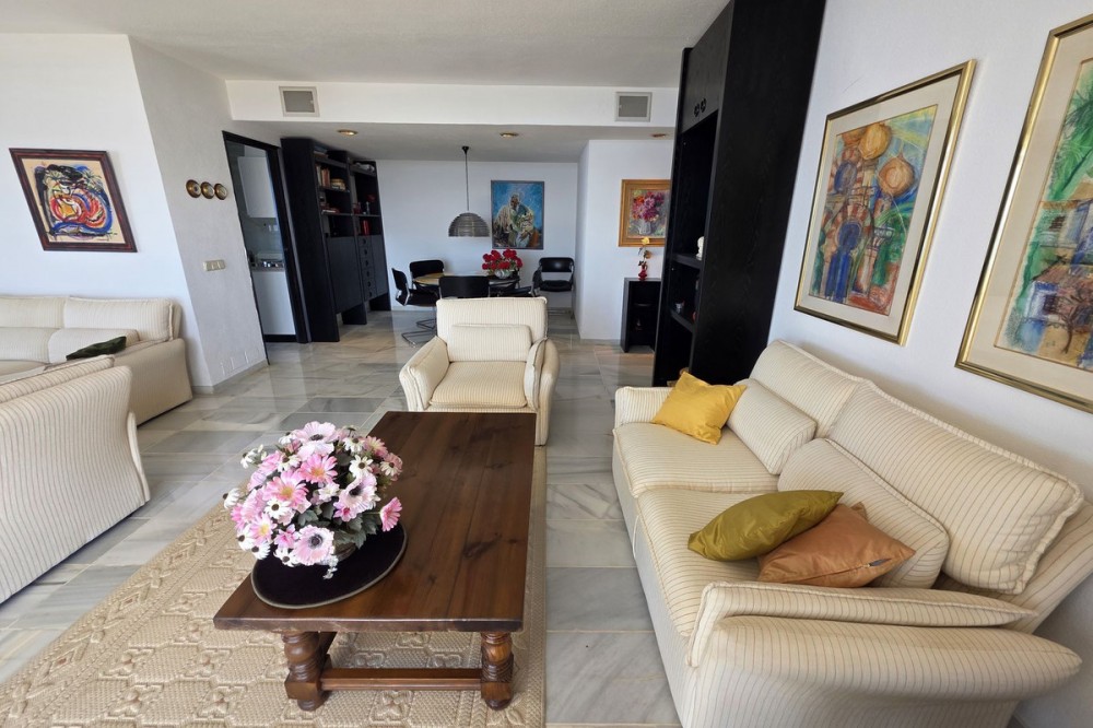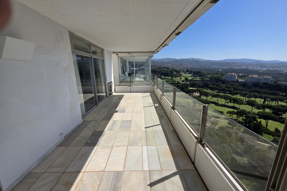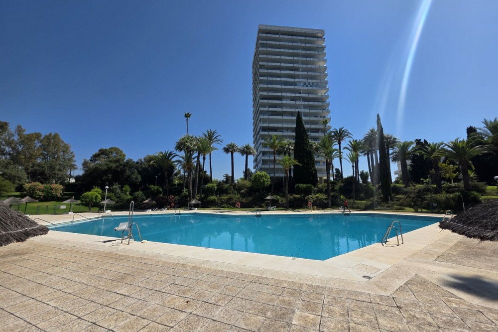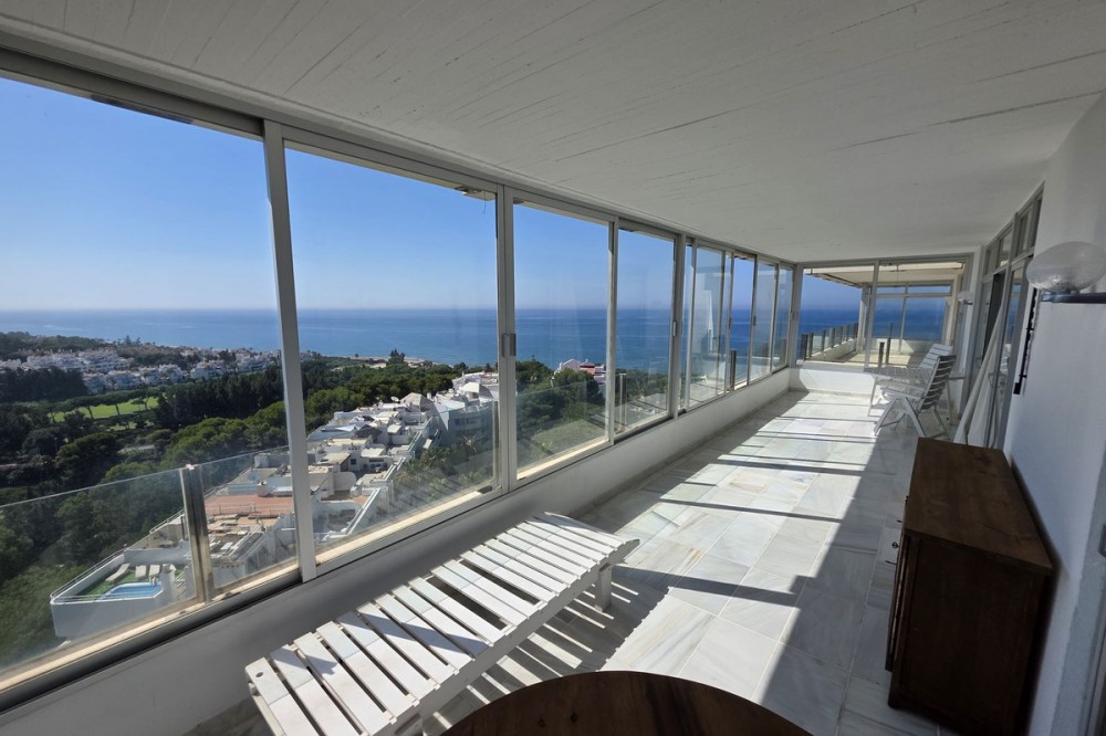 - Unique opportunity to purchase two apartments which were united into one big apartment in the famous Torre Real in Marbella. Offering a total of 120m2 living and 98m2 terraces all around. Due to the location on one of the last floors of the building, you enjoy stunning views to the sea, views along the coast and to the mountains. The property comes with two private parking in the underground garage and a storage room. The gated community is also very special with large community grounds, gardens, pool areas and two tennis courts. The building offers a lift and a concierge service. About 10minutes from the historic part of Marbella town and only 45 minutes from the Málaga airport and city.