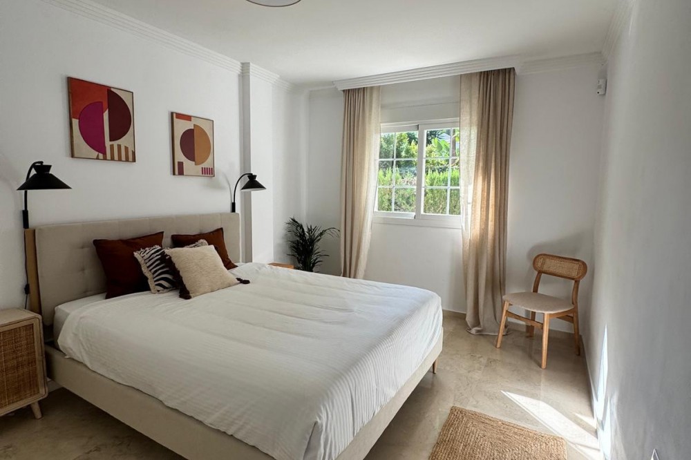 - Prachtig gerenoveerd appartement met 3 slaapkamers en 2 badkamers op de begane grond, gelegen in de prestigieuze wijk Río Real in Marbella-oost. Op slechts een paar minuten van het strand, winkelcentrum La Cañada en het centrum van Marbella, biedt deze woning de perfecte combinatie van rust, kwaliteit en gemak. Het appartement heeft een woonoppervlakte van 110 m² en is volledig gerenoveerd met hoogwaardige afwerkingen. Het biedt een lichte en ruime woon-eetkamer met grote ramen, een moderne open keuken en een elegante inrichting. De badkamers zijn voorzien van vloerverwarming en de woning is uitgerust met airconditioning. Het appartement wordt volledig gemeubileerd verkocht en is direct te betrekken. De woning beschikt over een berging en een eigen parkeerplaats in de ondergrondse garage. Bewoners kunnen genieten van prachtig onderhouden gemeenschappelijke tuinen en zwembaden, dit alles in een rustige en veilige buurt. Dit appartement is gelegen in een van de meest prestigieuze woonwijken van Marbella en combineert comfort en elegantie met een fantastische locatie dicht bij golfbanen, natuur en de zee. Bebouwde oppervlakte: 110 m² VvE-kosten: €132 per maand Een stijlvolle en moderne woning in een van de meest gewilde buurten van Marbella – perfect als permanente woning, tweede huis of investeringsmogelijkheid.
