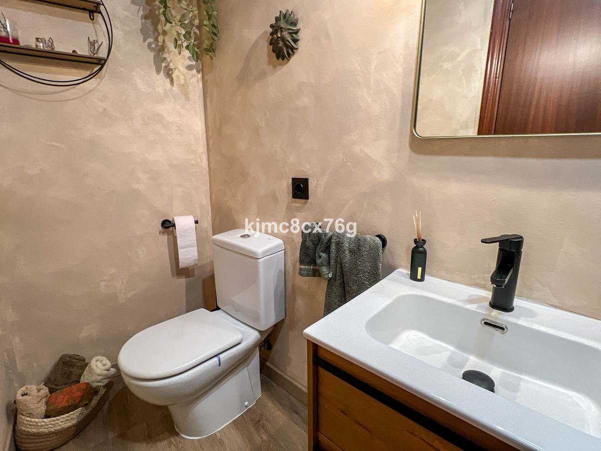 - Te koop: Stijlvol appartement met 3 slaapkamers en 2 badkamers in het centrum van Marbella Dit doordacht ontworpen appartement, gelegen in het hart van Marbella, biedt 76 m² lichte, moderne woonruimte op één verdieping. De indeling is zeer efficiënt, met een centrale hal die drie goed geproportioneerde slaapkamers, twee badkamers, een stijlvolle keuken en een open woon- en eetgedeelte met elkaar verbindt. Het interieur kenmerkt zich door een warme en harmonieuze uitstraling, met houten vloeren en veel natuurlijk licht dat binnenvalt door ramen met bamboe jaloezieën. De keuken is voorzien van strakke houten kasten, zwarte werkbladen en roestvrijstalen apparaten, waaronder een ingebouwde oven en koelkast. Beide badkamers zijn smaakvol ingericht: de ene met een glazen douchecabine, decoratief tegelwerk en een houten wastafelmeubel; de andere met groene accenten die een natuurlijke uitstraling aan de ruimte geven. De slaapkamers zijn comfortabel en veelzijdig, waarvan er één momenteel als thuiskantoor wordt gebruikt. Slimme opbergoplossingen omvatten open kastsystemen en geïntegreerde planken. Dit appartement, gelegen in het bruisende centrum van Marbella, combineert perfect functionaliteit en stijl – ideaal voor permanent wonen of als vakantiehuis dat u zo kunt afsluiten en weer vertrekken.