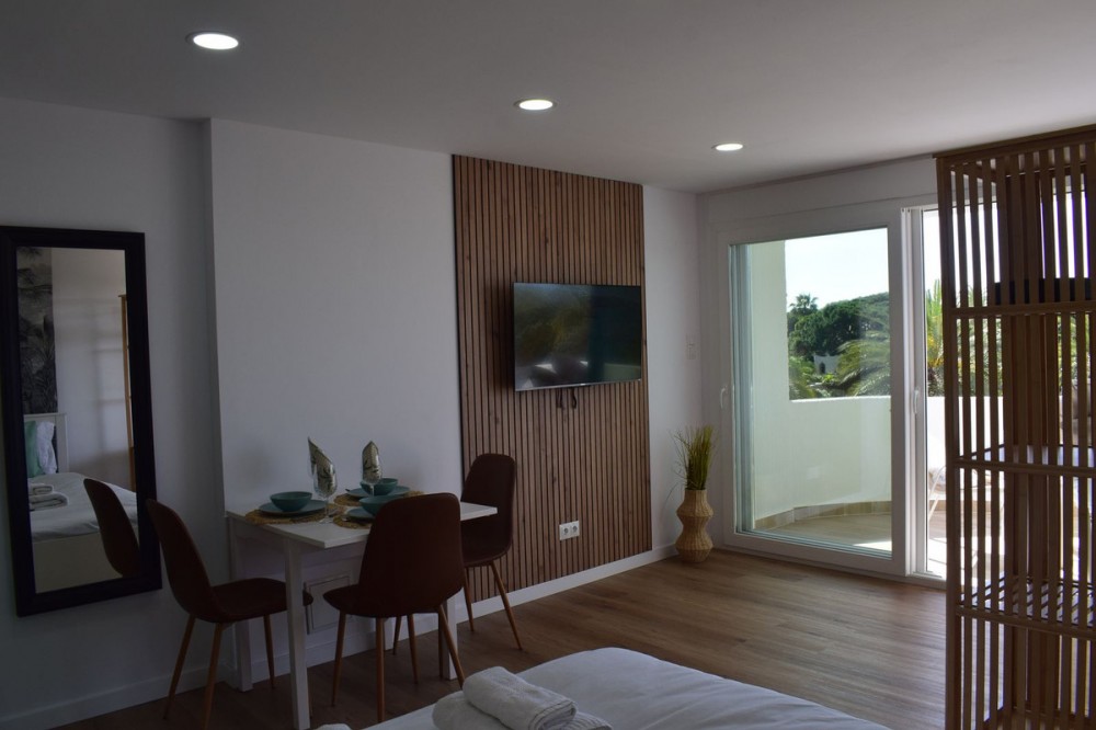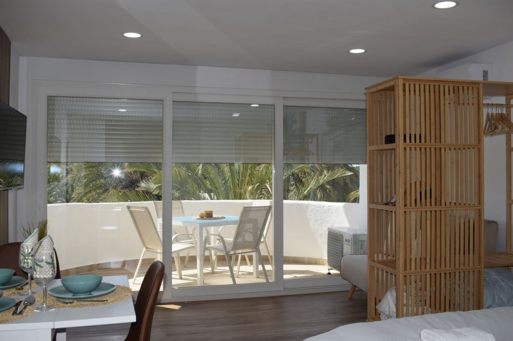 - Located in Marbesa, one of Marbella’s most sought-after areas, this completely renovated studio is for sale in the iconic Coronado Building. A turnkey property, ready to enjoy or to continue generating income from day one. Comprehensive Renovation & Quality: The property has been renovated from scratch with impeccable workmanship: brand new electrical wiring and plumbing. Its 53 m² built (40 m² useful) are distributed in a functional space featuring a modern equipped kitchen (including washing machine and dishwasher) and a bathroom with contemporary finishes. The living/sleeping area opens onto a spectacular terrace. Efficiency & Savings: One of the main advantages of this studio is its low running costs: -Centralized hot water: No need for an electric water heater inside the apartment (saving space and maintenance). Both cold and hot water are included in the community fees. -Reasonable Community Fees: Paid semi-annually (approx. €600-700 every 6 months), covering maintenance, reception, gardens, and water consumption. -Minimal electricity bill: The average cost is around €33/month. -Low Taxes: IBI (Council Tax) approx. €300/year and Rubbish Tax €93/year. Features & Common Areas: -The Coronado Building (1973). -Spacious gardens and community pool. -Private Gym: For the exclusive use of owners and long-term tenants (not available for short-term holiday renters). -Communal Storage: Designated space on the ground floor to conveniently store beach chairs, sunbeds, and umbrellas. -Easy-access public street parking. -Location: Just a few minutes' walk from the beach, restaurants, and amenities. -Proven Profitability: The apartment comes with an active Airbnb profile and already has bookings and income secured for the 2025 season. Ideal for both personal use and holiday rentals due to its high demand.