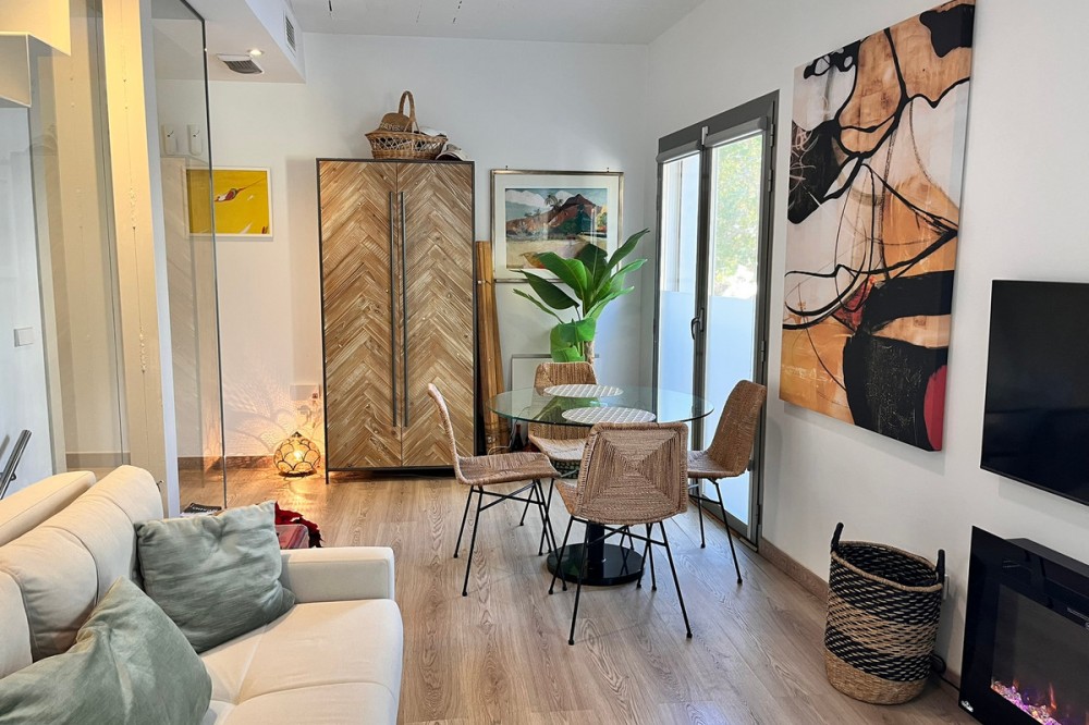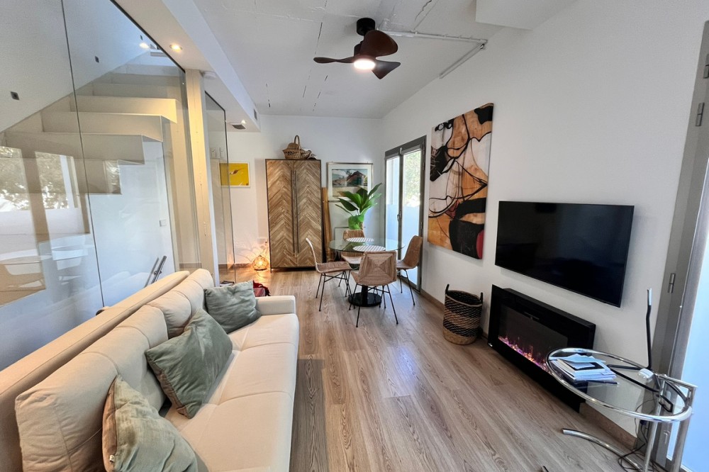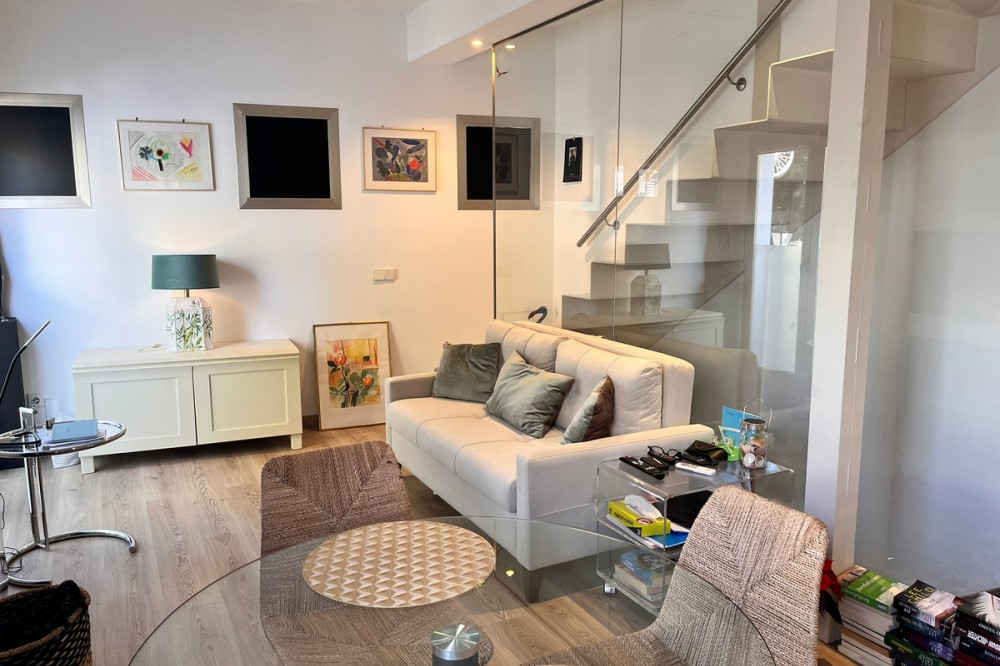 - Fantastic duplex apartment in Marbella\'s Old Town, completely renovated. The only flat in the building without neighbours. Ideal for owners with dogs. This very bright apartment has a living-dining room with hot/cold air conditioning and an electric fireplace with LED technology and large windows that provide plenty of light with high ceilings, a fitted and equipped kitchen, and on the second floor there is a bedroom with a full bathroom and a terrace. Walking distance to all amenities that make your daily life more comfortable without the need for a vehicle. A step from Marbella Old Town, where you can stroll through the city\'s iconic narrow streets, and just 12 minutes from Marbella\'s best beaches and the promenade. Great opportunity! Property with no extra costs. It is a candy. Come and visit! The Documento Informativo Abreviado (DIA) - Brief Abbreviated Information Document - is available. Fees: Taxes (ITP or VAT + AJD) + notary and registration fees. DS1