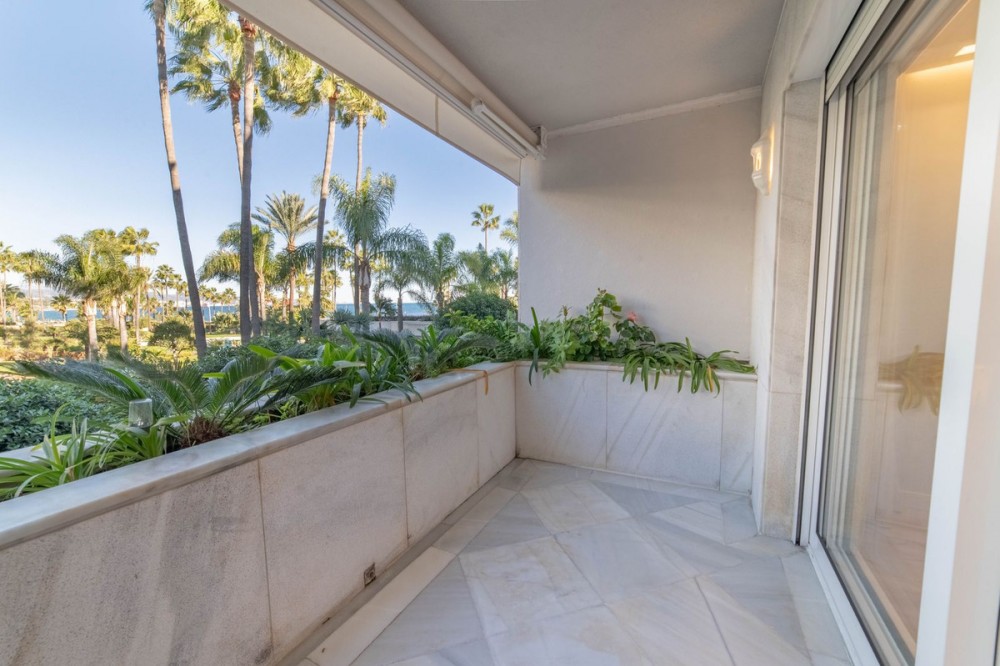 - Middle Floor Apartment, Marbella, Costa del Sol. 2 Bedrooms + laundry room, 2 full Bathrooms + 1 guest toilet, Built 120 m², Terrace 10 m². Setting : Beachfront, Close To Shops, Close To Sea, Urbanisation, Front Line Beach Complex. Orientation : South West. Condition : Excellent, Recently Renovated. Pool : Communal, Indoor. Climate Control : Air Conditioning, Fireplace. Views : Sea, Garden. Features : Covered Terrace, Private Terrace, Storage Room, Ensuite Bathroom, Double Glazing. Furniture : Optional. Kitchen : Fully Fitted. Garden : Communal. Security : Gated Complex, Electric Blinds, 24 Hour Security, Safe. Category : Beachfront, Luxury.