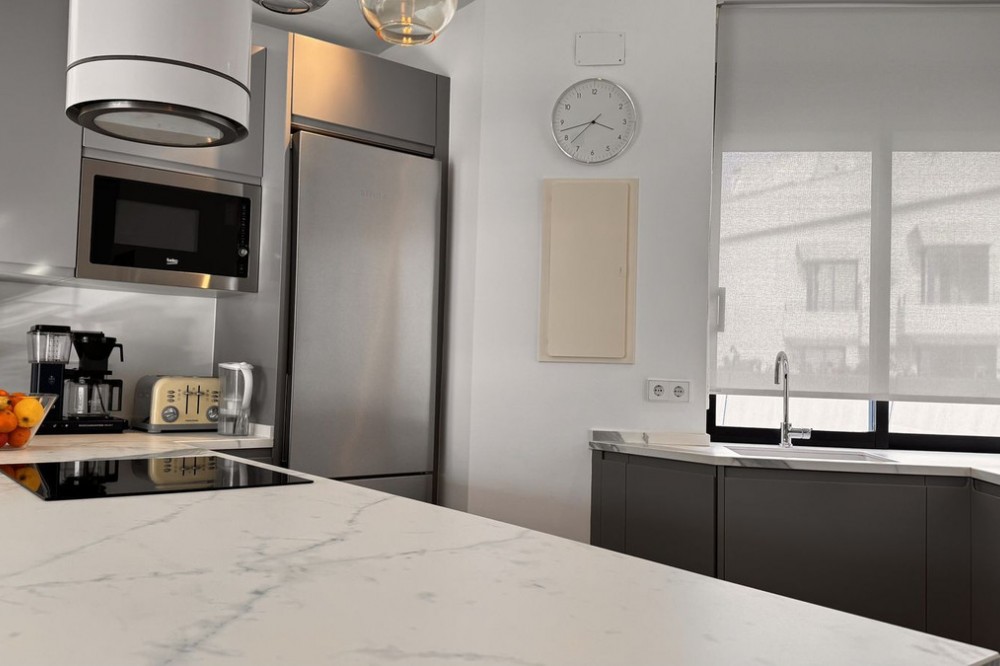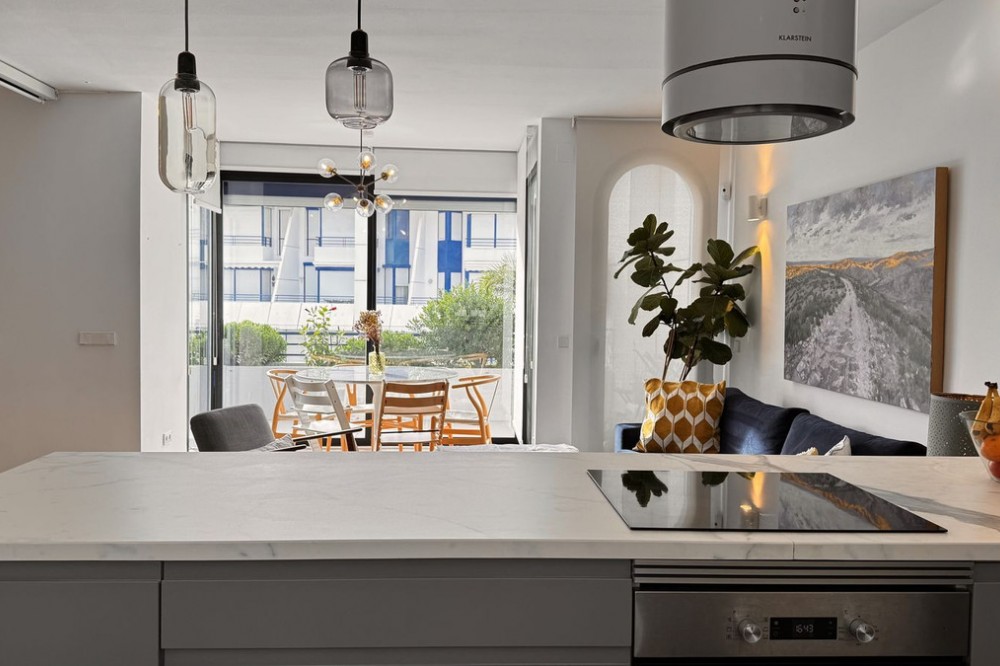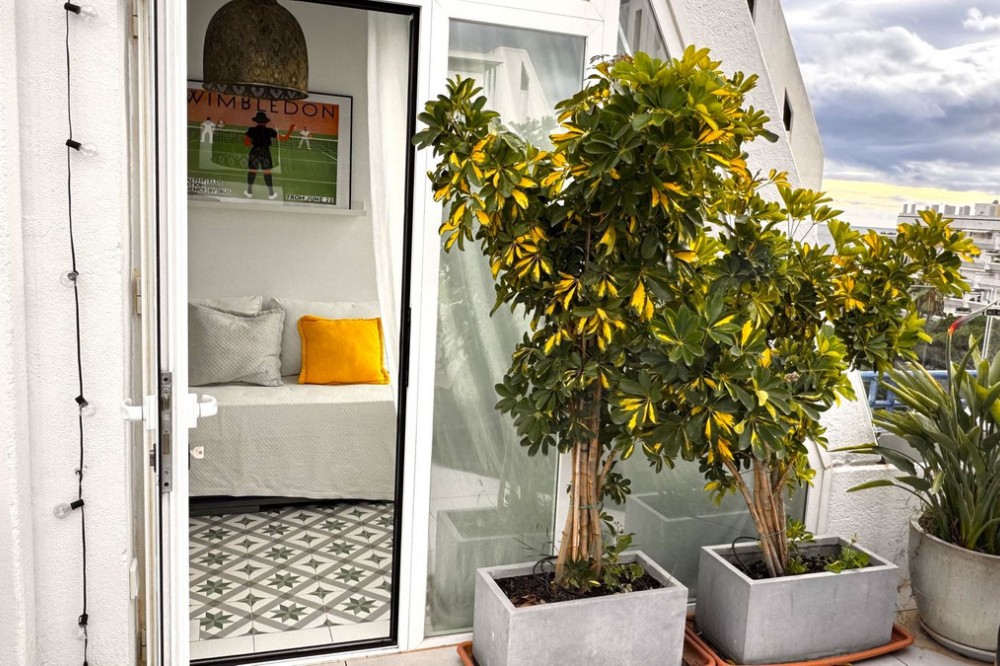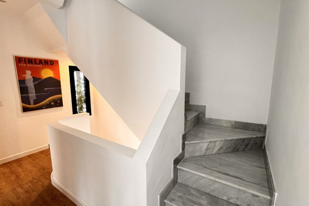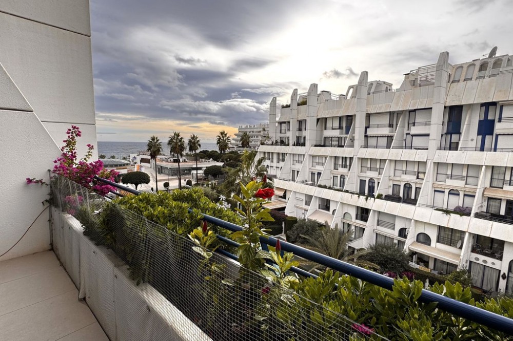 - Penthouse with sea views in Marbella House. This exceptional property is located in the prestigious Marbella House development, just a few steps from the beach and the Promenade. Fully renovated, the penthouse is laid out over three levels, making the most of natural light and the stunning Mediterranean views. On the main floor, you will find a spacious living room with direct access to a sunny terrace — perfect for enjoying outdoor living or spending time with family and friends. The open-plan kitchen is equipped with high-end appliances and offers a contemporary style that brings warmth and functionality. A guest toilet completes this level. The upper floor features two bedrooms with en-suite bathrooms, finished with top-quality materials. The master bedroom includes a cozy reading or relaxation area with partial sea views. The rooftop terrace is undoubtedly the highlight: a spectacular private solarium with barbecue area and panoramic views of the sea and mountains. This level also includes an additional studio room, ideal as an extra bedroom, office or reading space. Marbella House offers a secure and exclusive environment with 24-hour security, beautiful tropical gardens, swimming pool, gym, sauna and squash court. The property includes a large parking space with room for a car and two motorbikes, as well as a storage room — adding practicality and value to a home designed to be enjoyed all year round.